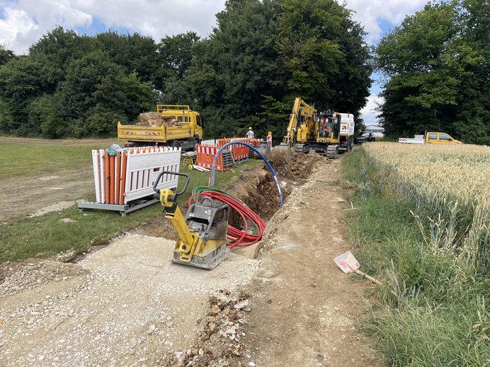 Eine weitere Kolonne ist inzwischen in Aichen angekommen und verlegt dort die Trasse und stellt die Hausanschlüsse her.